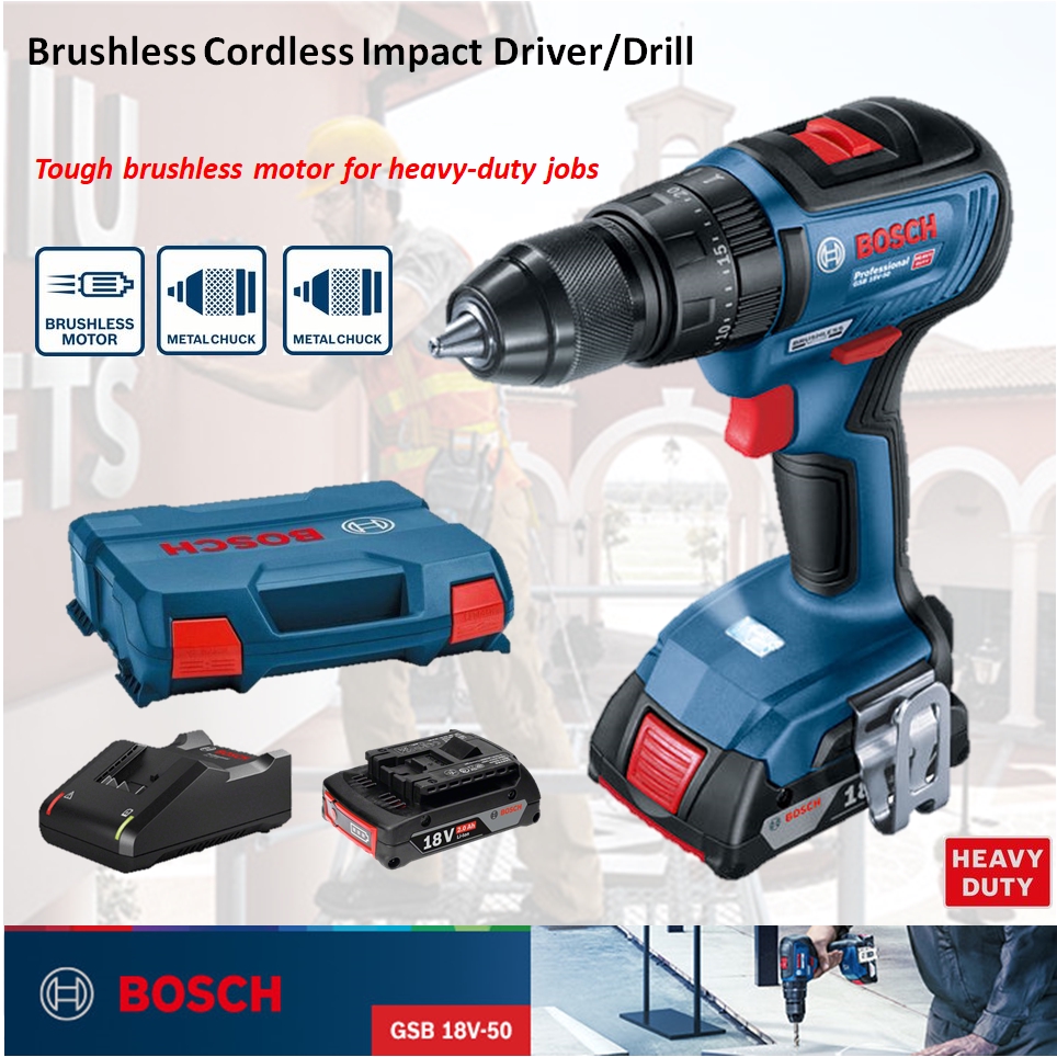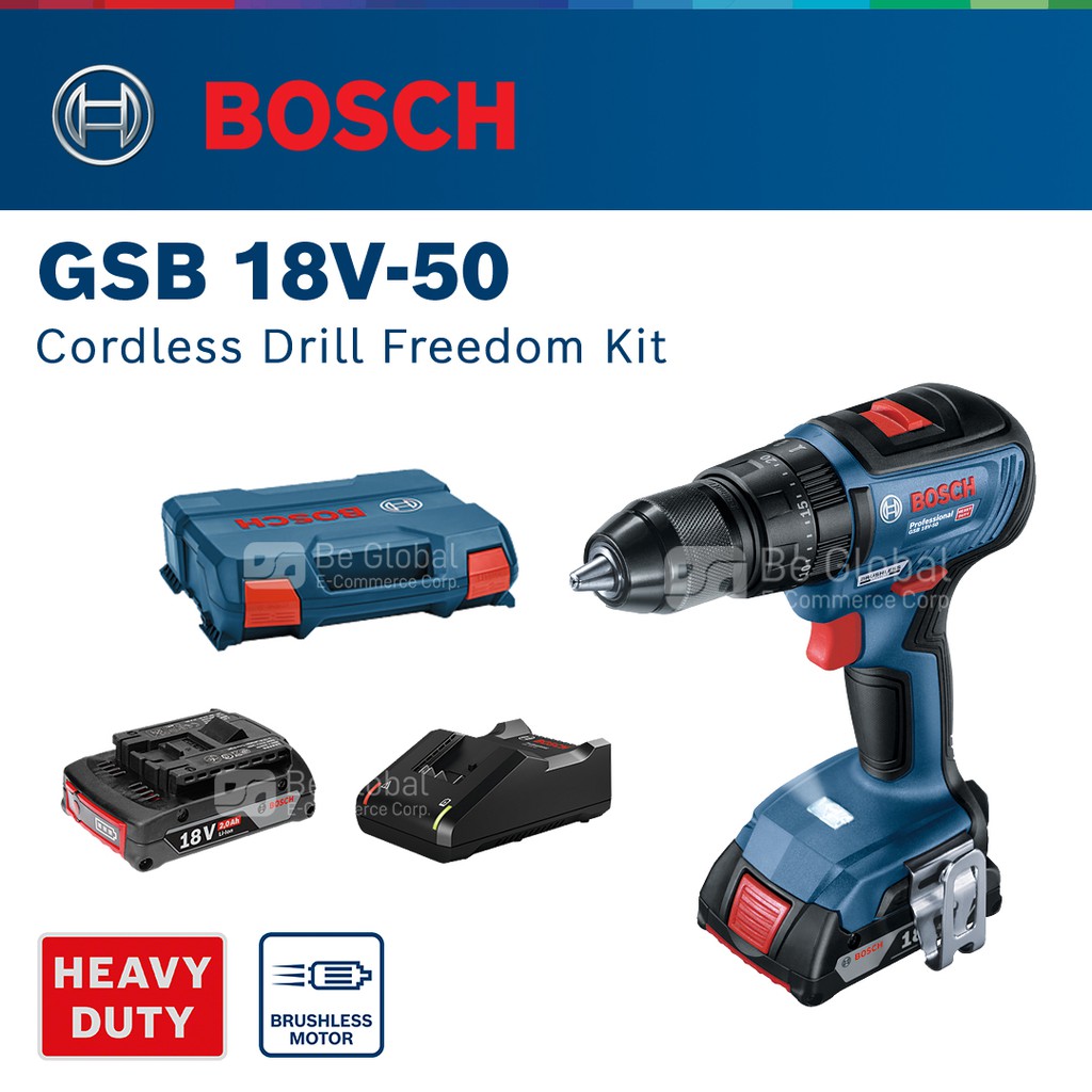 Bosch Gsb18V-50 : Bosch GSB 18V-50 Cordless Impact Drill COMBI SET ... - 1 x gba 18v 2.0ah battery.. Professional 18v system works with bosch batteries and chargers of the same voltage. All the bosch professional 18v tools (blue) are compatible with the bosch 18v professional batteries.thanks, bosch. 1 x gba 18v 2.0ah battery. 1 hoursproduct unboxing | basic reviewhelp me. Optimal protection of the cells against excessive heat :