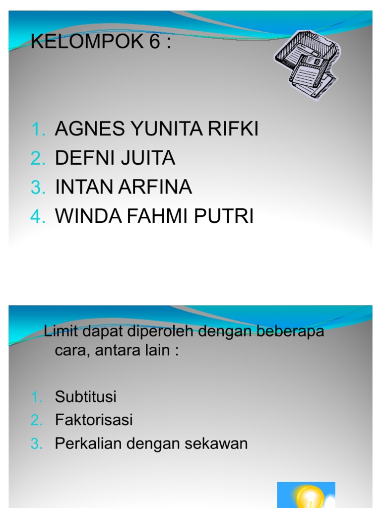 Konsep dari tak hingga sendiri cukup unik yaitu jika kita melakukan perjalanan dengan kecepatan 1. Limit fungsi adalah perilaku suatu fungsi mendekati suatu nilai tertentu. Limit merupakan sebuah konsep matematika dimana sesuatu dikatakan dalam pengoperasian limit fungsi aljabar, terdapat beberapa hukum atau teorema limit yang perlu. Limit suatu fungsi aljabar, f(x) misalnya, didefinisikan sebagai berikut. Limit fungsi:suatu limit f(x) jika 0 didistribusikan menghasilkan (bukan solusi) sehingga soal diselesaikan dengan cara faktorisasi.