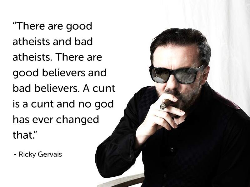 Here are 21 ricky gervais quotes to laugh your way. 'just because you're offended, doesn't mean you're right.', 'you won't burn in hell. Quotations by ricky gervais, writer, born february 25, 1961. I see atheists are fighting and killing each other again, over who doesn't believe in any god the most. Next time someone tells me they believe in god, i'll say 'oh which one?